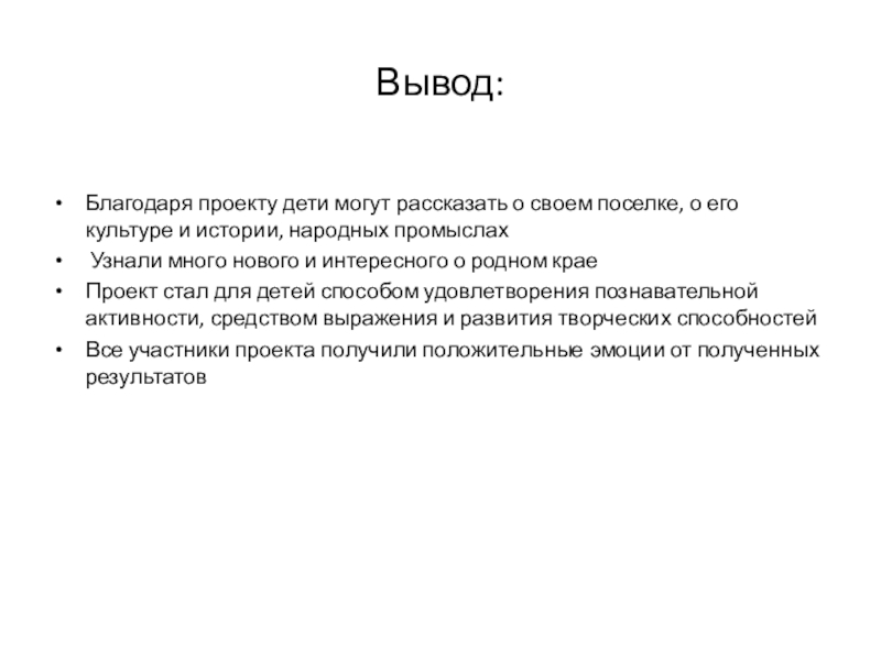 Благодаря проекту дети могут рассказать о своем поселке, о его культуре