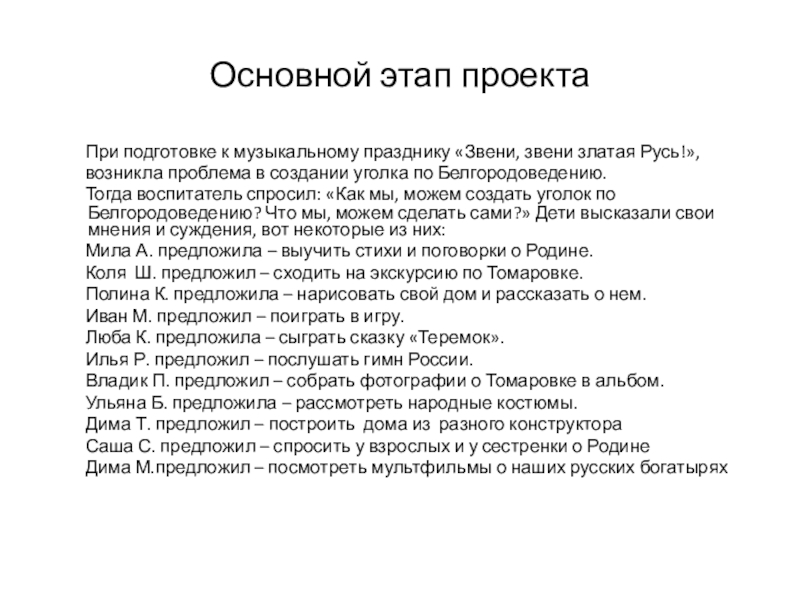Тогда воспитатель спросил: «Как мы, можем создать уголок по Белгородоведению? Что мы, можем сделать сами?» Дети высказали свои мнения и суждения, вот некоторые из них: