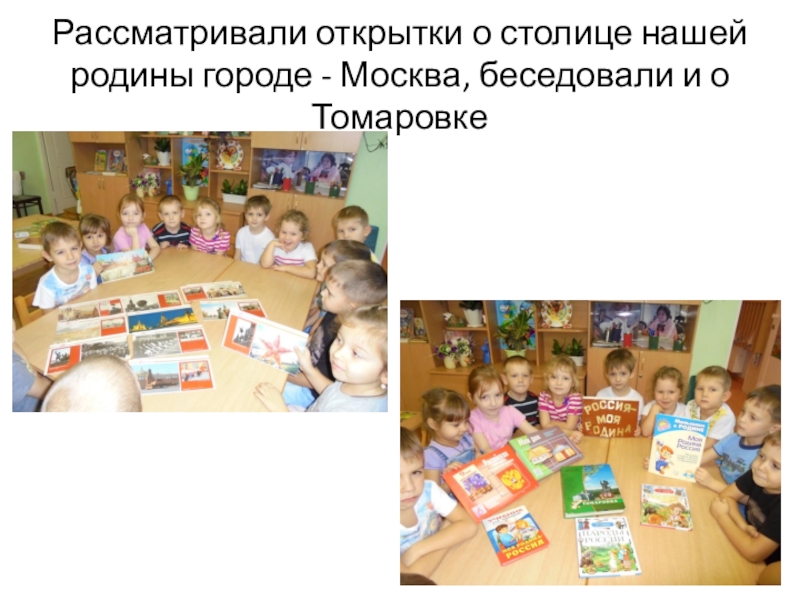 Слайд 26Рассматривали открытки о столице нашей родины городе - Москва, беседовали и