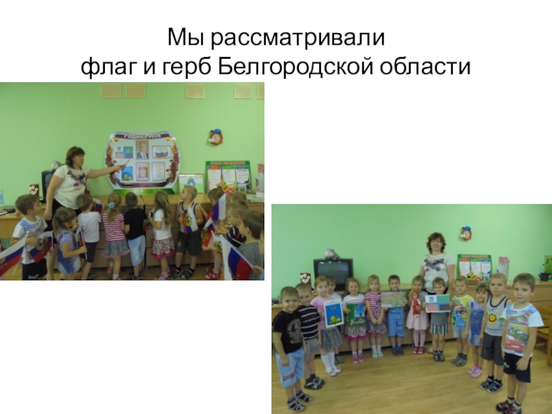 со знакомства с символикой России, Белгородской области, слушали гимн, рассмотрели карту России
