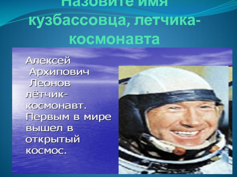 Слайд 21Назовите имя кузбассовца, летчика-космонавта