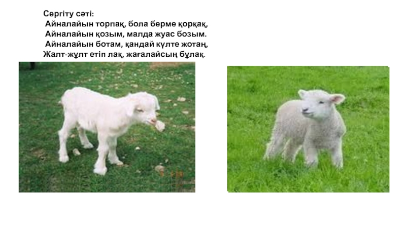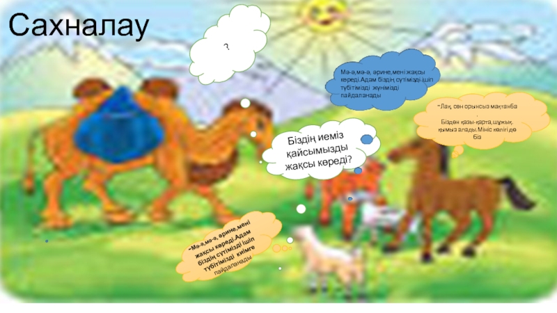 Мә-ә,мә-ә, әрине,мені жақсы көреді.Адам біздің сүтімізді ішіп түбітімізді жүнімізді пайдаланады