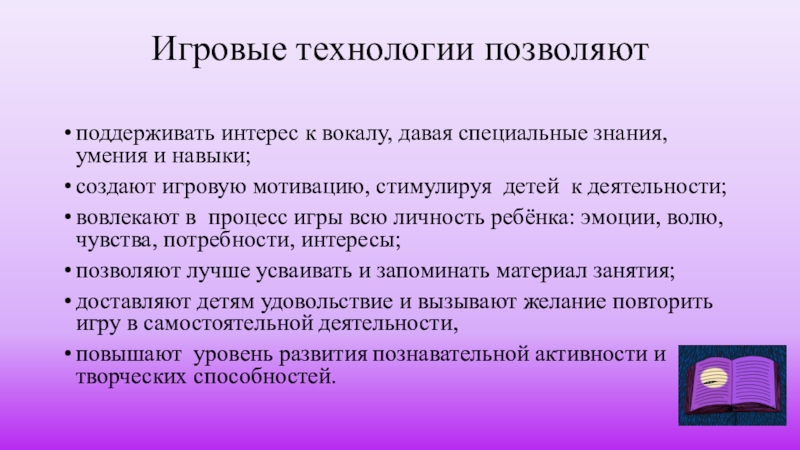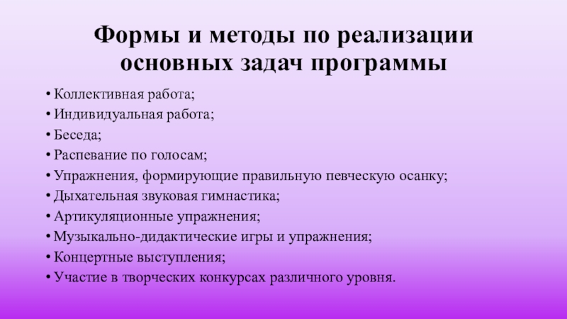 поддерживать интерес к вокалу, давая специальные знания, умения и