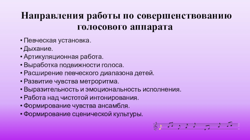 Слайд 10Направления работы по совершенствованию голосового аппарата