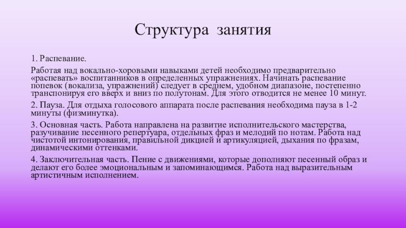 2.5. Структура непосредственно-образовательной деятельности по вокалу