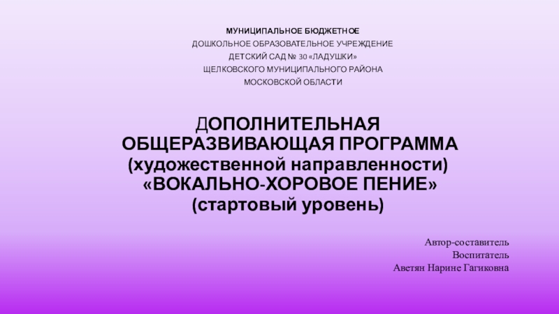 «ВОКАЛЬНО-ХОРОВОЕ ПЕНИЕ»
