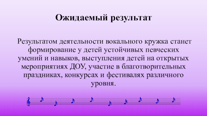 Результатом деятельности вокального кружка станет формирование у детей устойчивых певческих