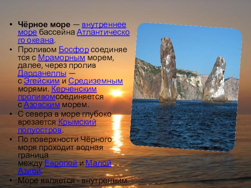 Слайд 2Чёрное море — внутреннее море бассейна Атлантического океана.