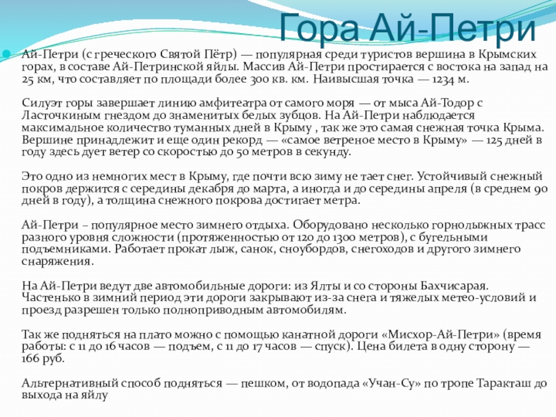 Ай-Петри (с греческого Святой Пётр) — популярная среди туристов