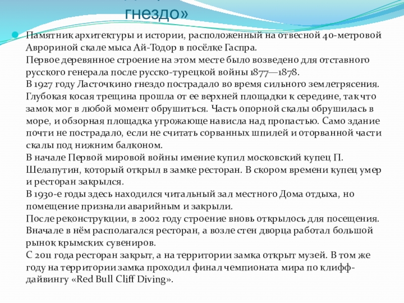 Слайд 4Дворец-замок «Ласточкино гнездо»