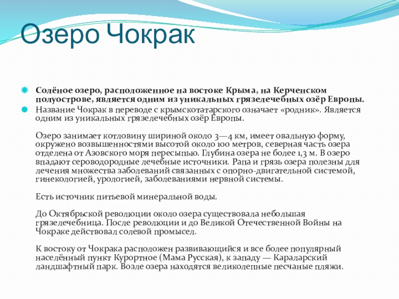 Слайд 25Озеро Чокрак