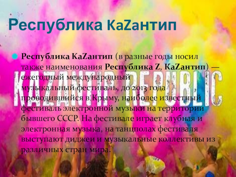 Республика KaZaнтип (в разные годы носил также наименования Республика Z, КаZантип) — ежегодный международный