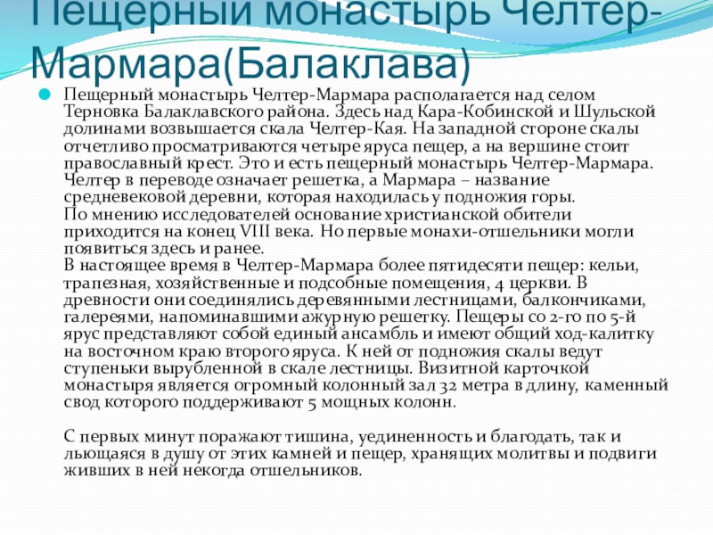 Слайд 27Пещерный монастырь Челтер-Мармара(Балаклава)