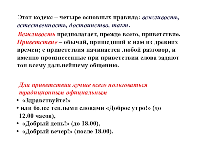 или более теплыми словами «Доброе утро!» (до 12.00 часов),
