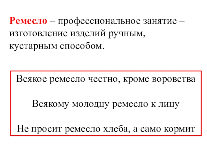 Слайд 7Ремесло – профессиональное занятие – изготовление изделий ручным, кустарным способом.