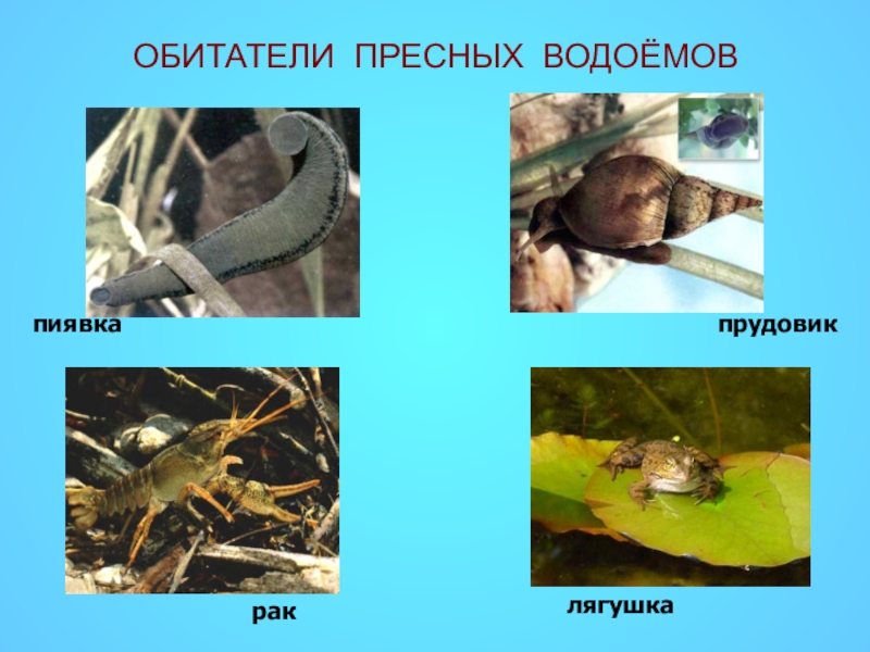 ОБИТАТЕЛИ ПРЕСНЫХ ВОДОЁМОВпиявкапрудовикраклягушка