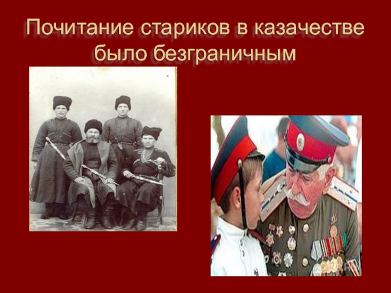 Слайд 11 Старики выступали хранителями казачьих обычаев и традиций, и почитание