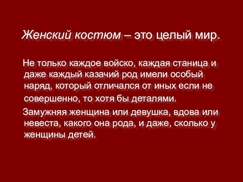 Не только каждое войско, каждая станица и даже каждый казачий род имели особый наряд, который отличался от иных если не совершенно, то хотя бы деталями.