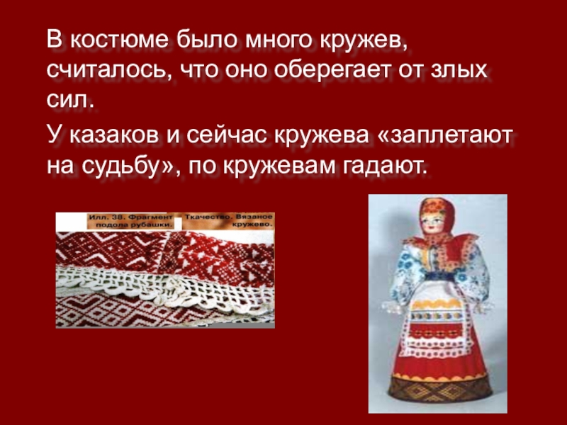 У казаков и сейчас кружева «заплетают на судьбу», по кружевам гадают.