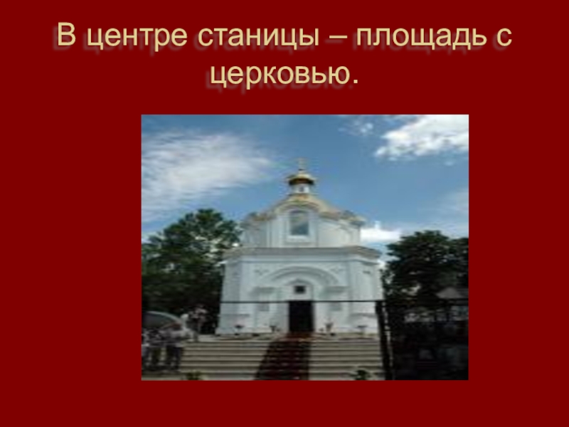 – станицами. Обычно строительство велось по плану. В центре станицы – площадь с церковью, школой, станичным правлением.