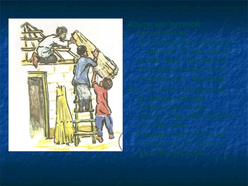 Слайд 8Крыли ее  путаной соломой или соломенными снопиками – парками. Затем в