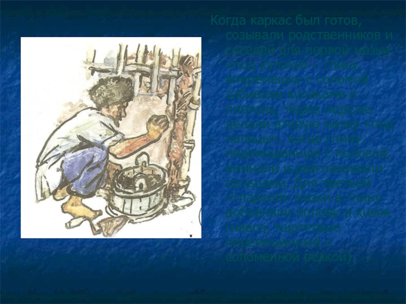Слайд 7Когда каркас был готов, созывали родственников и соседей для первой мазки