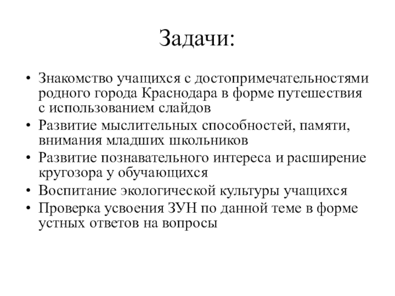 Знакомство учащихся с достопримечательностями родного города Краснодара в форме путешествия с