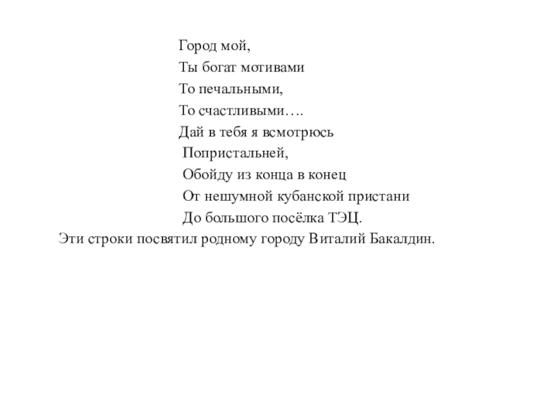 Эти строки посвятил родному городу Виталий Бакалдин.