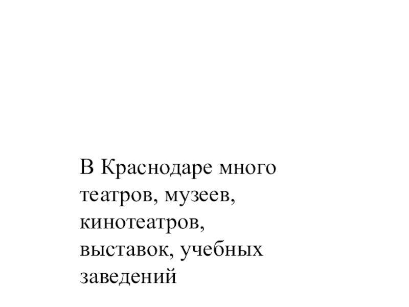 В Краснодаре много театров, музеев, кинотеатров, выставок, учебных заведений