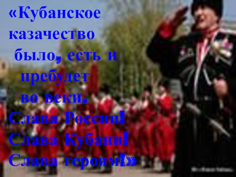 «Кубанское казачество было, есть и пребудет во веки.Слава России! Слава Кубани!Слава героям!»