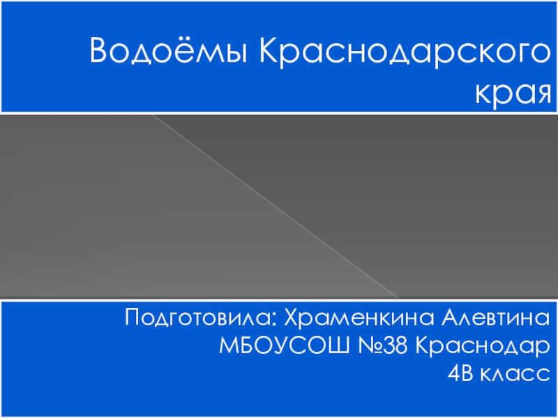 Водоёмы Краснодарского краяПодготовила: Храменкина Алевтина МБОУСОШ №38 Краснодар 4В класс