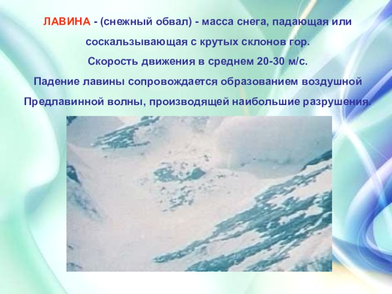 Слайд 7ЛАВИНА - (снежный обвал) - масса снега, падающая или