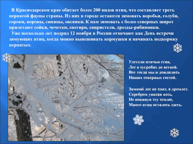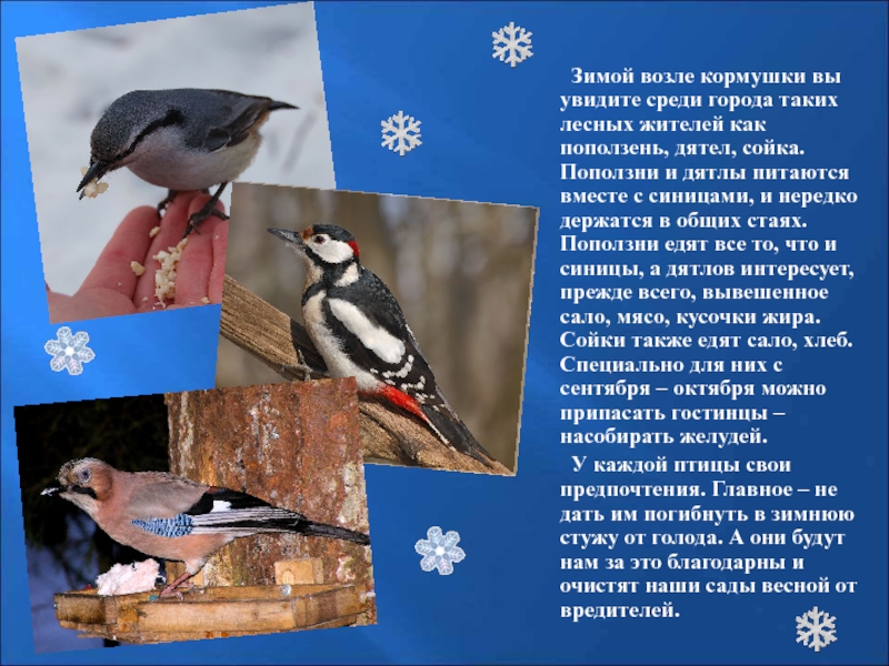 Зимняя подкормка птиц - уже довольно старая традиция. Первыми инициаторами ее были сами птицы. Они быстро усвоили, что возле человеческих жилищ можно кое-чем разжиться - различные отходы, либо то, что плохо лежит. Зимой даже типично лесные птицы начинают тянуться к человеческому жилищу. Голод - не тетка, и он заставляет на определенное время забыть о естественной осторожности.
