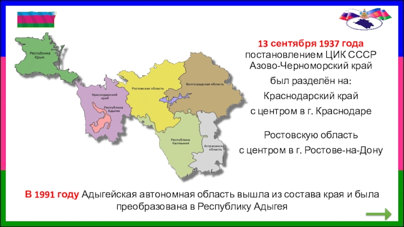 В 1991 году Адыгейская автономная область вышла из состава края и была преобразована в Республику Адыгея