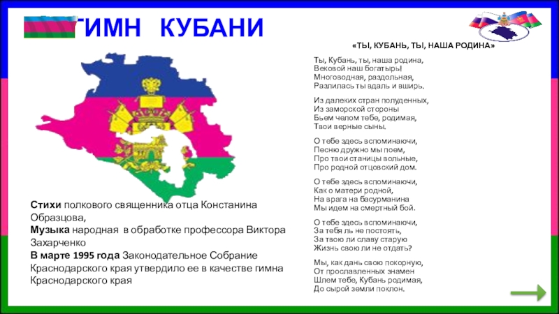 В марте 1995 года Законодательное Собрание Краснодарского края утвердило ее в качестве гимна Краснодарского края