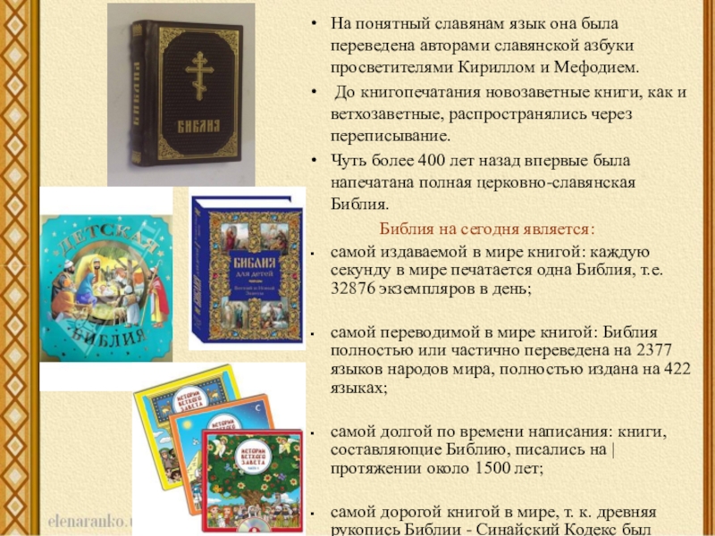 Библия разделяется на две части - Ветхий завет и Новый завет. К первой принадлежат 24 книги, написанные в дохристианское время на еврейском языке и чтимые священными как у евреев, так и у христиан.
