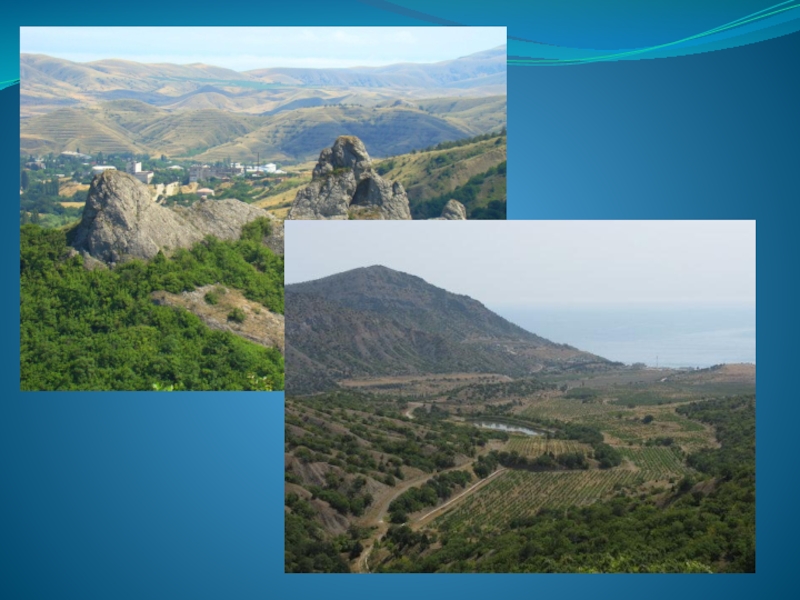 Слайд 23Крымский ландшафт очень своеобразен. В крымской земле есть полезные ископаемые. Хозяйственное значение