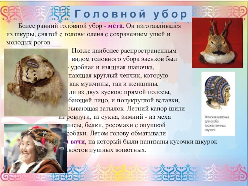 из шкуры, снятой с головы оленя с сохранением ушей и