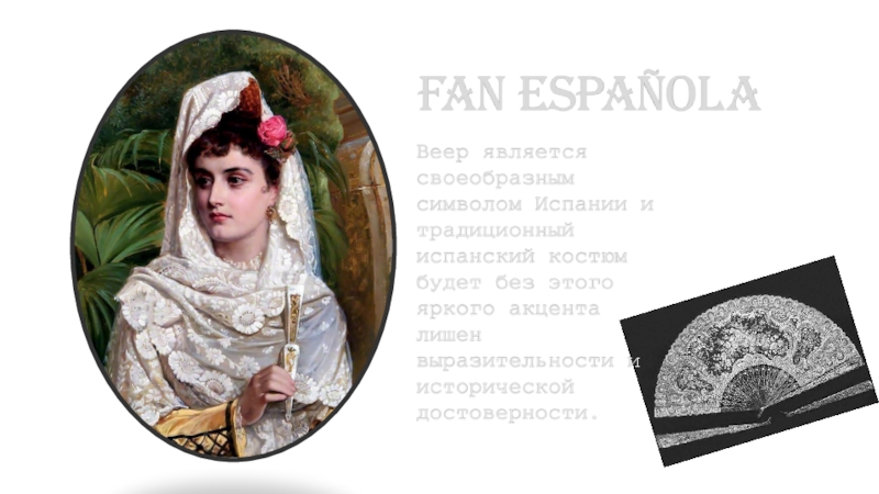 Fan españolaВеер является своеобразным символом Испании и традиционный испанский костюм будет без этого яркого акцента лишен выразительности