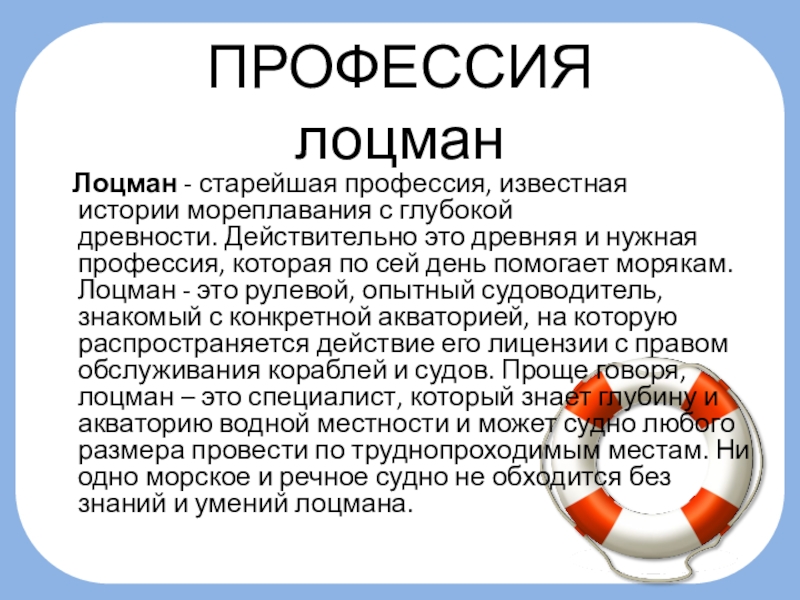 Лоцман - старейшая профессия, известная истории мореплавания с глубокой древности. Действительно это древняя и