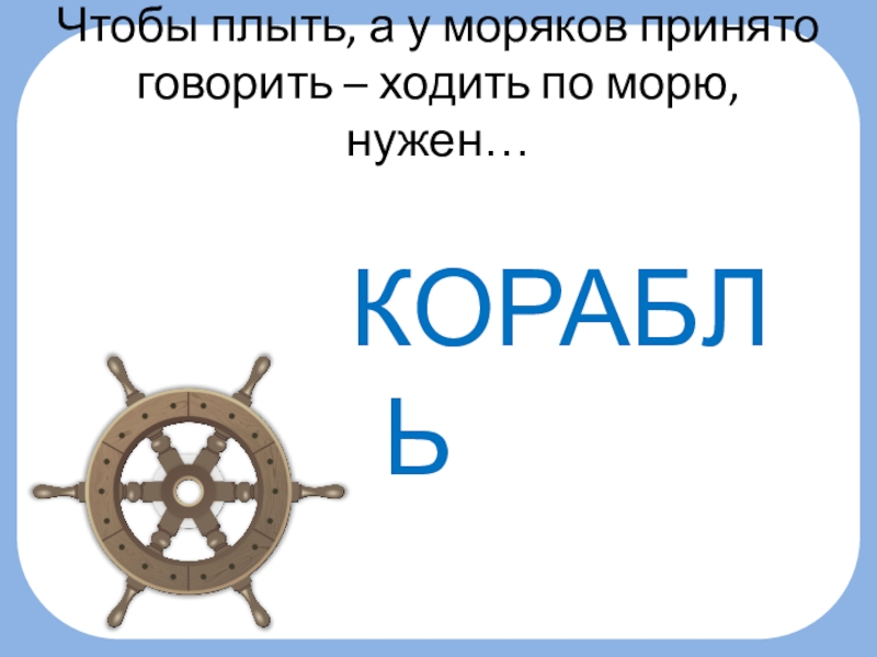 Слайд 2Чтобы плыть, а у моряков принято говорить – ходить по морю,