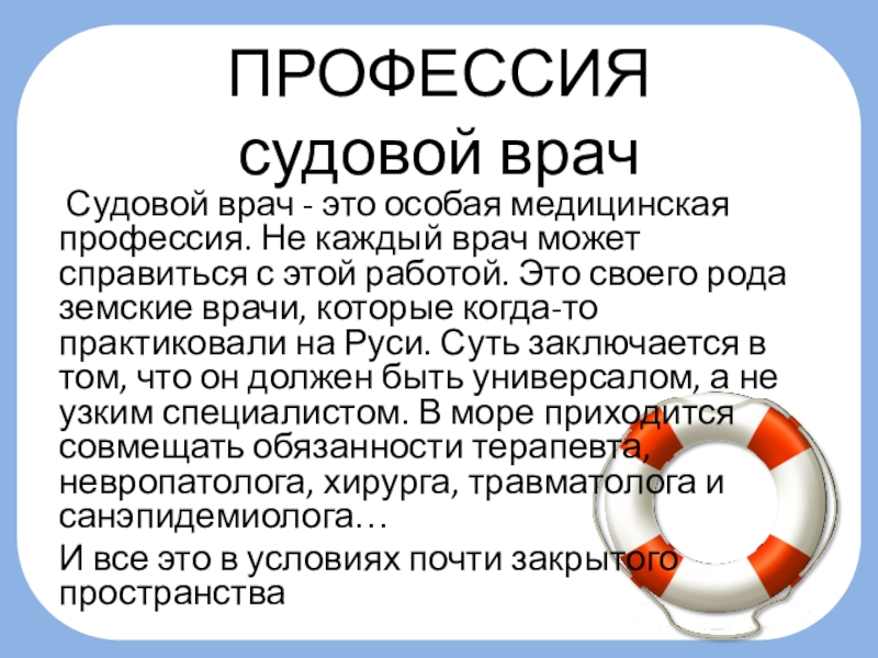 Судовой врач - это особая медицинская профессия.