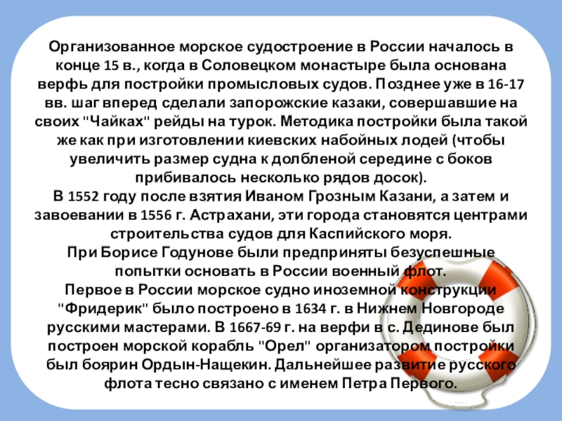Слайд 4Организованное морское судостроение в России началось в конце 15 в., когда