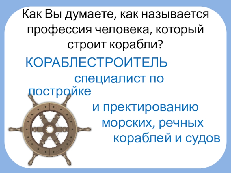 Слайд 3Как Вы думаете, как называется профессия человека, который строит корабли?