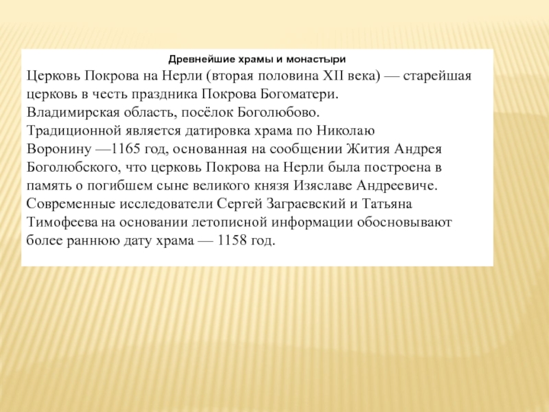 Церковь Покрова на Нерли (вторая половина XII века) — старейшая