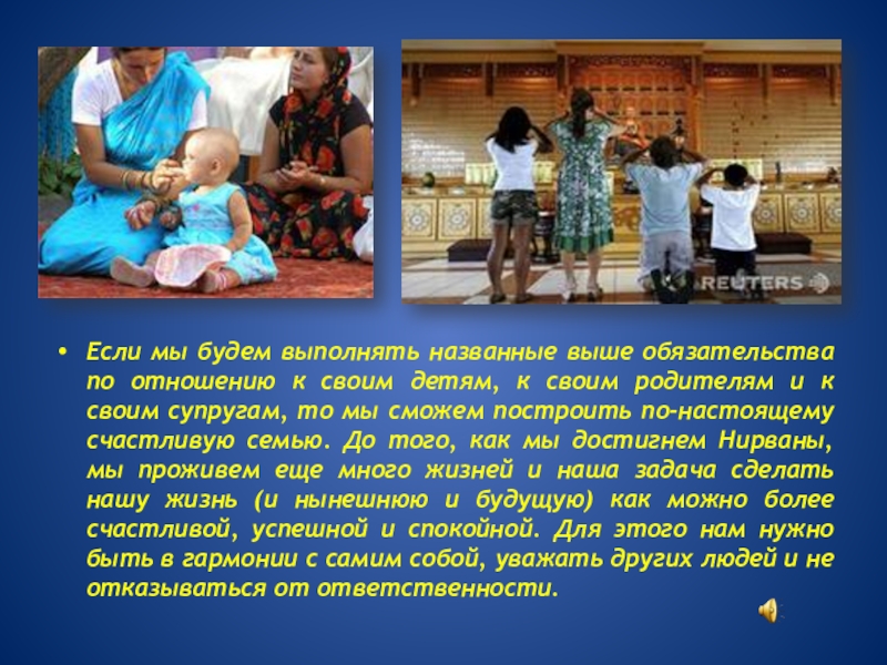Считается, что тот, кто выполняет свои обязанности, помогает семье приблизиться к счастью.