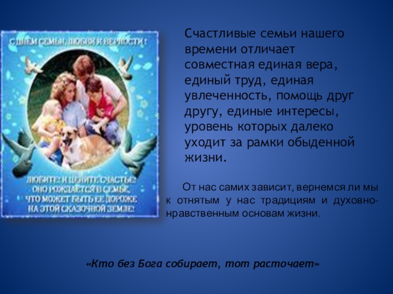От нас самих зависит, вернемся ли мы к отнятым у нас традициям и духовно-нравственным основам жизни.