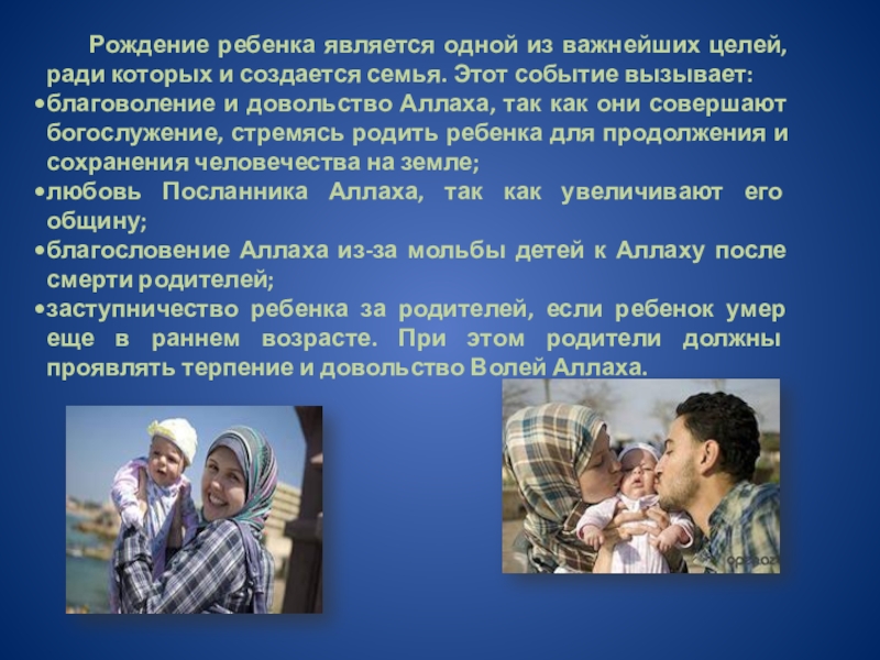 * рожать детей и их воспитывать,