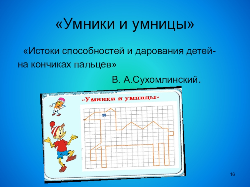 «Умники и умницы»  «Истоки способностей и дарования детей- на кончиках пальцев»