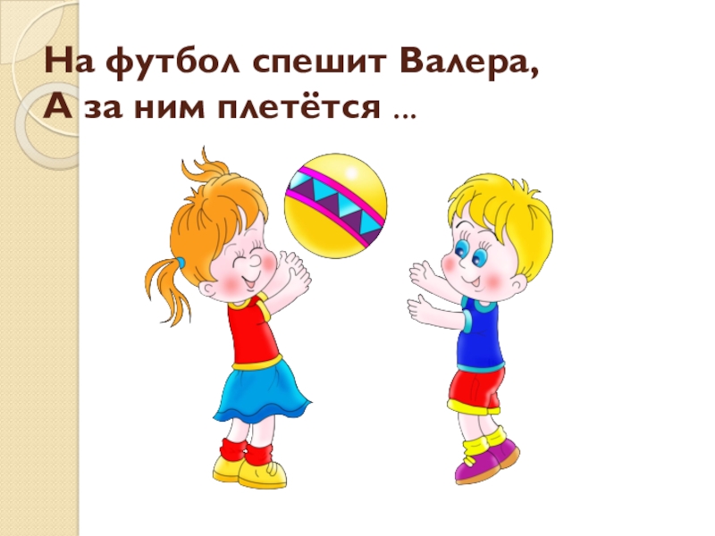 Слайд 3На футбол спешит Валера, А за ним плетётся ...